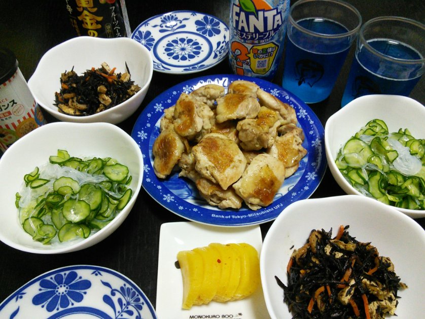 すだちペッパーチキン、玉子焼き、茄子の生姜和え、さつまいもはちレモ煮、ブロッコリー