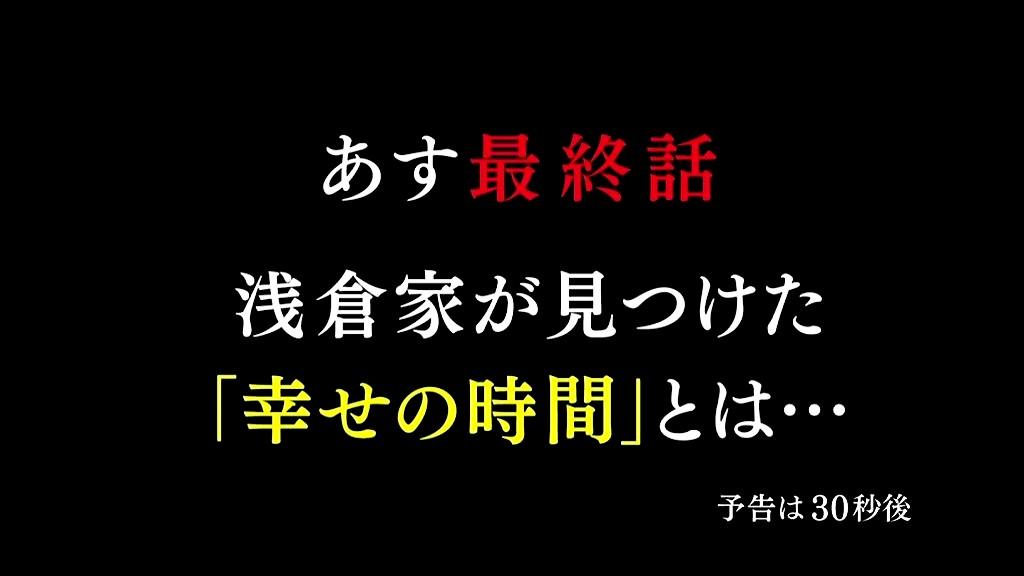 明日のたった30分で状況が変わるとは思えないんだけど。最終回拡大2時間スペシャルでもやらないと世間の奥さんが納得しないよ #幸せの時間
