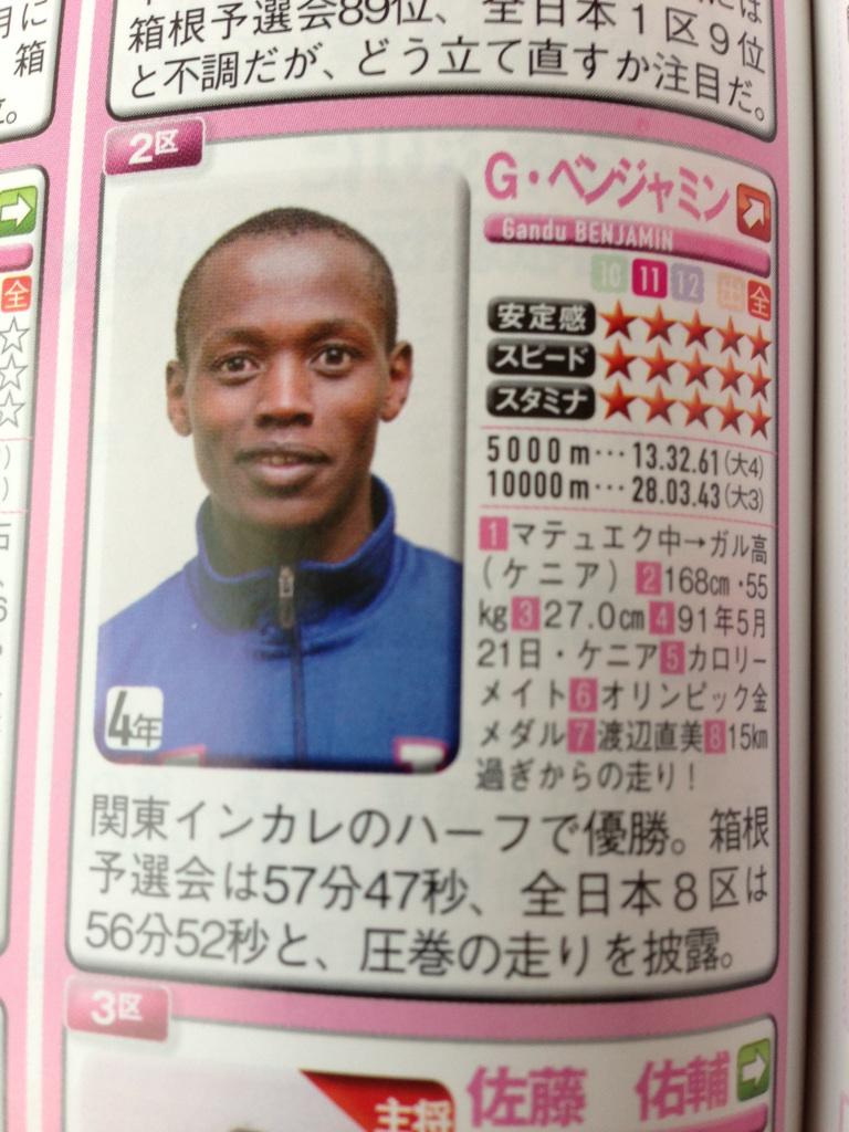 Σ(゚Д゚;) マジかRT @ara_eku: 【速報】現在2区をはしる日大のベンジャミン君、好きなタイプは「渡辺直美」。 #箱根駅伝 #ntv pic.twitter.com/m2UTMRWO