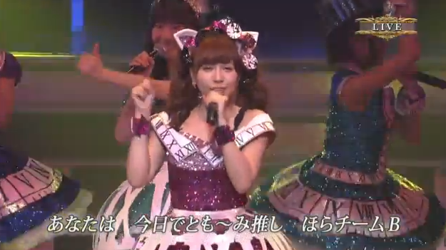 7位「チームB推し」柏木チームB→石田晴香、河西智美、柏木由紀、北原里英、小林香菜、佐藤亜美菜、鈴木紫帆里、鈴木まりや、近野莉菜、宮崎美穂、渡辺麻友、片山陽加、渡辺美優紀、佐藤すみれ #リクアワ #TDC2013