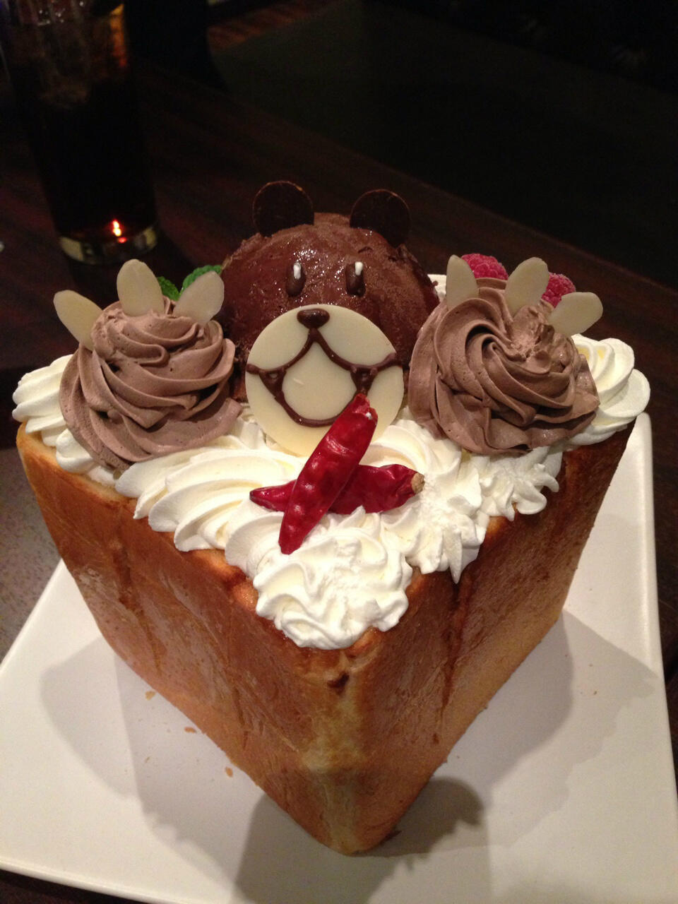 今気づきましたがハニトーにも鷹の爪乗ってるんですね。口休めですかね。" @asuka_k_0715: #スタチャカフェ " @pepako: レオナルド博士のハニトーはこちらです!!パセラリゾーツAKIBA #鷹の爪 pic.twitter.com/PXfQTPD8aT""