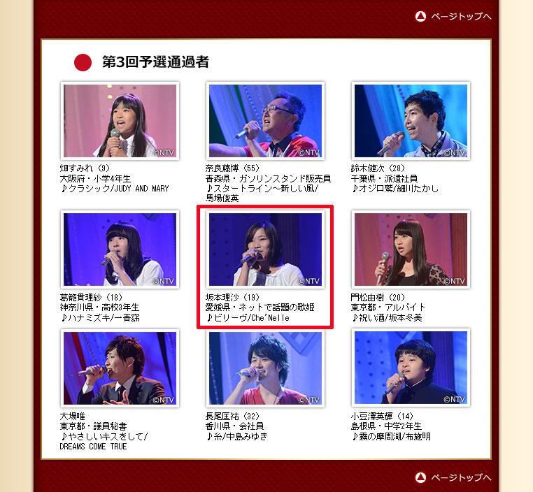 本日19時から、日本テレビ[全日本歌唱力選手権~歌唱王~]にて、我らシェネルの「ビリーヴ」を唄ってくれる坂本さん!テレビの前で応援してます!by内勤 ntv.co.jp/kasyou/ #歌唱王 #日本テレビ #日テレ pic.twitter.com/DRET6A6a3P