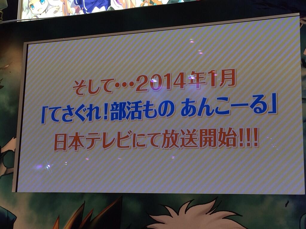 2014年1月から「てさぐれ!部活もの あんこーる」放送決定です!まさかの速攻2期きましたー!!コミケ85西243番日テレブースでPR映像流しております! ntv.co.jp/tesabu/ #tesabu pic.twitter.com/UkoblIESdr