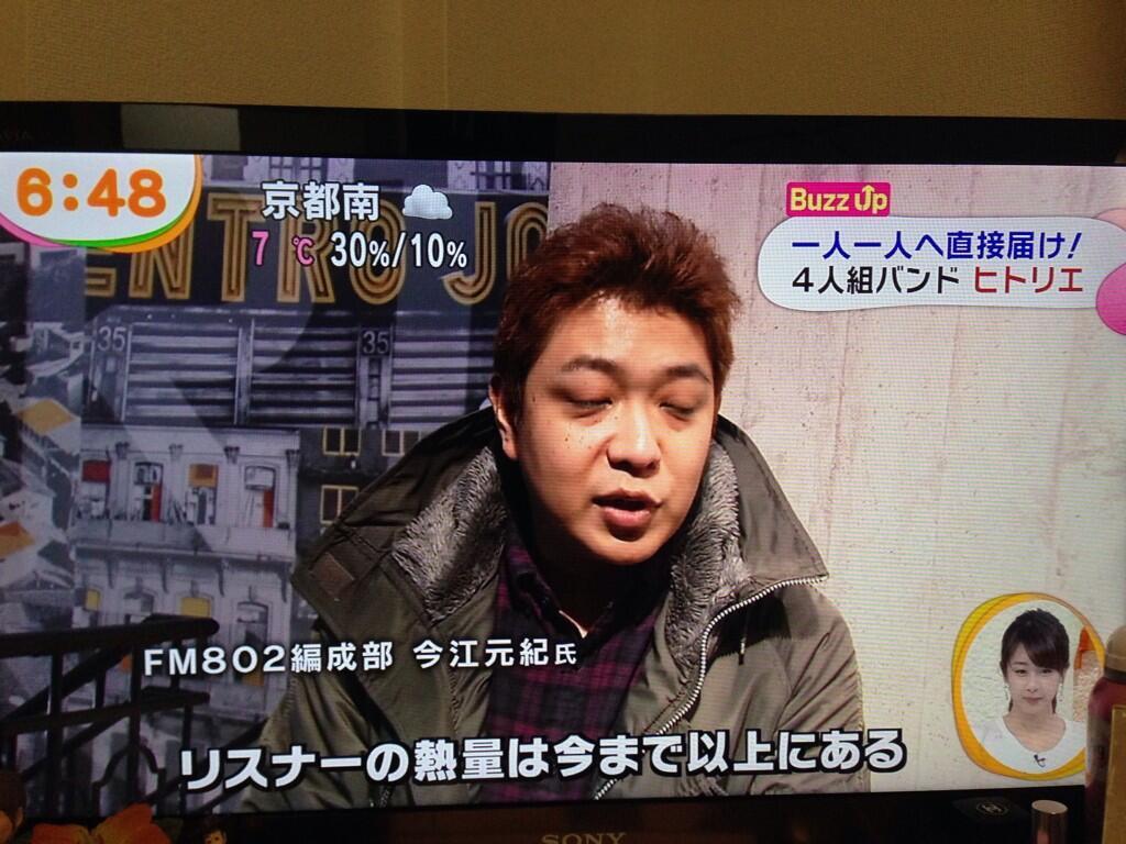 あれ!?この写真は!?今朝、我らの番組Pが めざましテレビに登場っ*\(^o^)/*先日 阿部野ROCK TOWNで行われた[LIVE∞INFINITY]ここに出演したヒトリエ(今月のヘビロ★) の取材だったみたい!祝! #RK802 pic.twitter.com/1iYHmYk4kb