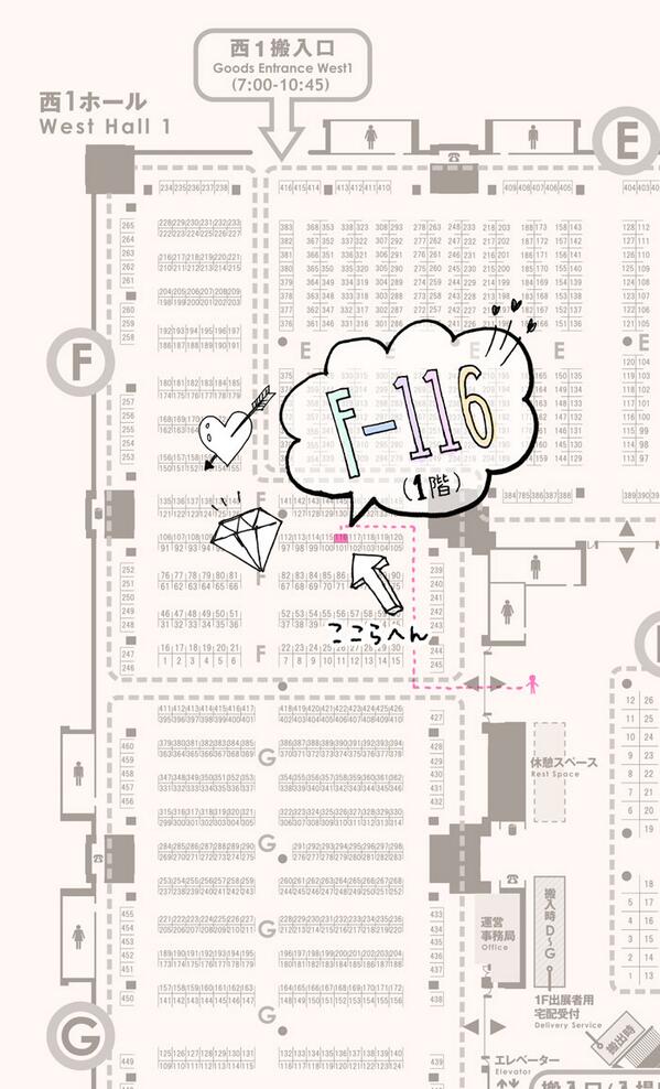 ショースペース脇のお手洗い手前の入口から近いです。昨日、自分でスペース戻る度、通りを間違えたので地図参考にご来場下さい:) #デザフェス pic.twitter.com/NDGjj0wayJ2014年5月18日 09:06