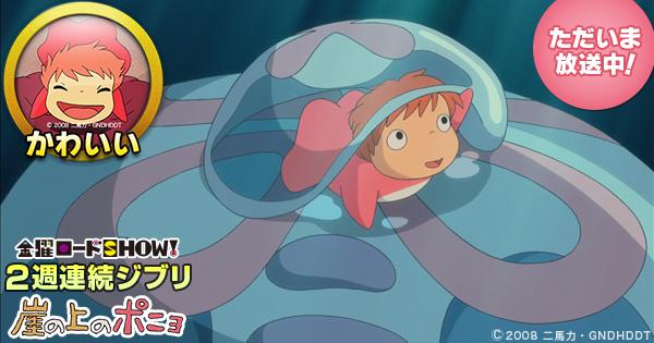 宮崎駿監督作品「崖の上のポニョ」が始まりました~!放送中、特設サイトでシーンガイドを実施中です!今すぐ「金曜ロード」で検索! #ポニョ #ジブリ #kinro pic.twitter.com/o7FGLWMOAK