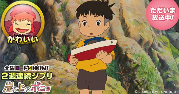 「崖の上のポニョ」の放送まであと5分!w(゚o゚)w 2.20「風立ちぬ」放送記念2週連続ジブリの第1弾です!(^_^) 宮崎駿監督が贈る、愛と友情の物語をぜひお楽しみください! #ポニョ #ジブリ #kinro pic.twitter.com/HQuvyDSsuk