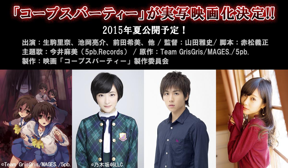 『コープスパーティー』の実写映画化が決定!!主演・生駒里奈(乃木坂46/AKB48兼任)/監督・山田雅史/主題歌・今井麻美。2015年夏、全国順次ロードショー cp-movie.jp #コープス pic.twitter.com/Vuvaw2VDfB