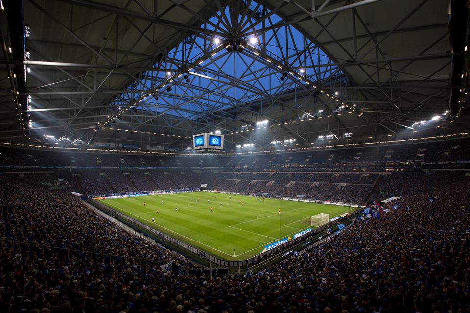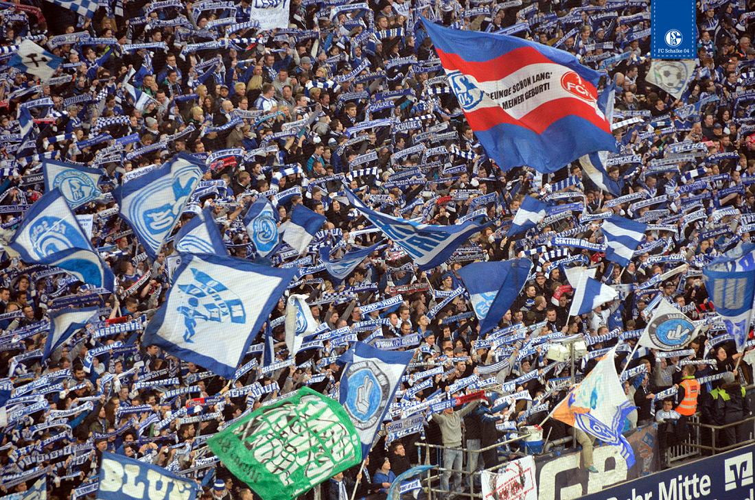 盛り上がるキックオフ前の観客席。 #シャルケ にはたくさんのサポーターがついています! #S04B04