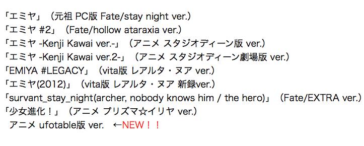 ufotable版 stay night で「エミヤ」がついに流れたということで、ここでこれまでのバージョンの歴史を振り返ってみる。 #Fate_sn_anime #Fate19 pic.twitter.com/vKHfwr8J3Z