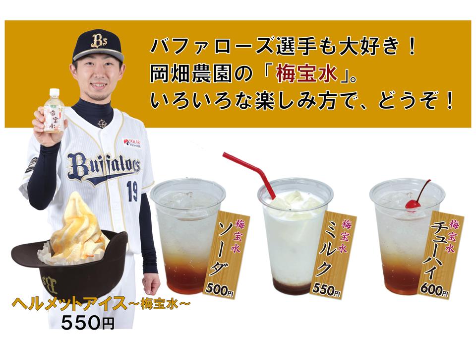 京セラドーム大阪にて、バファローズの選手達も大好きなBsオフィシャル梅クエン酸飲料「梅宝水」を使用したメニューの販売をスタート。