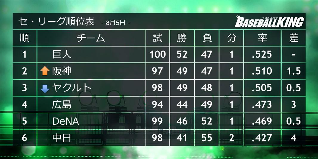【セ・リーグ順位表】