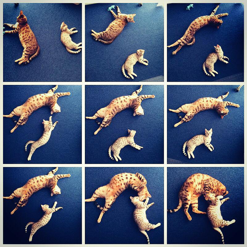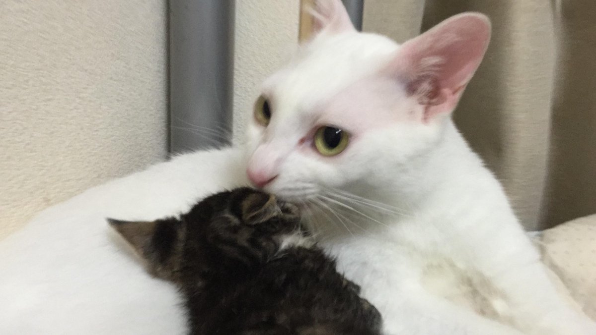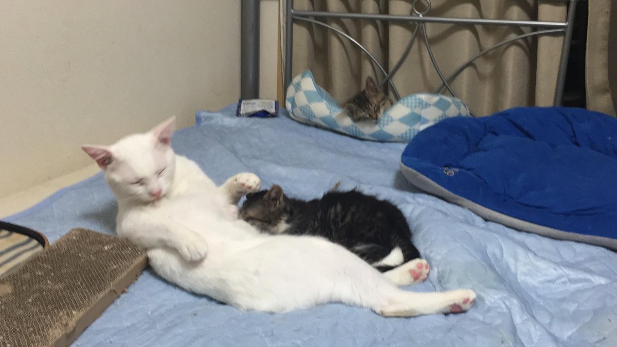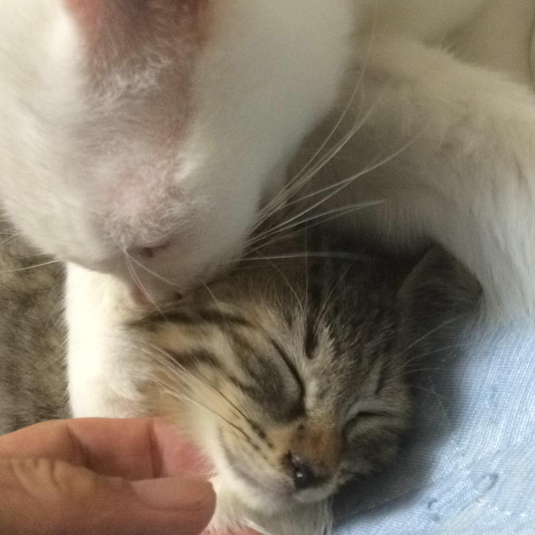 世界猫の日なので宇宙猫かあさん(♂)の育児風景 #世界猫の日 #世界ネコの日