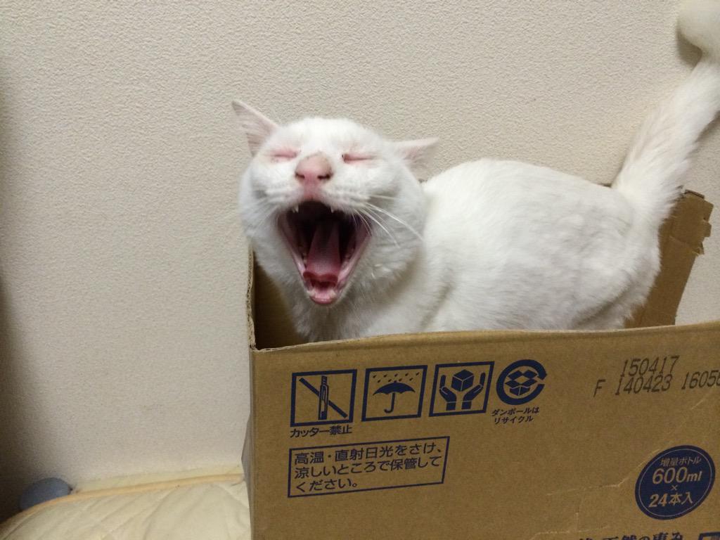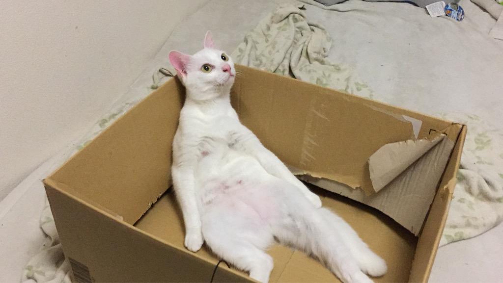 世界猫の日なので箱猫仕様の麿白 #世界猫の日 #世界ネコの日