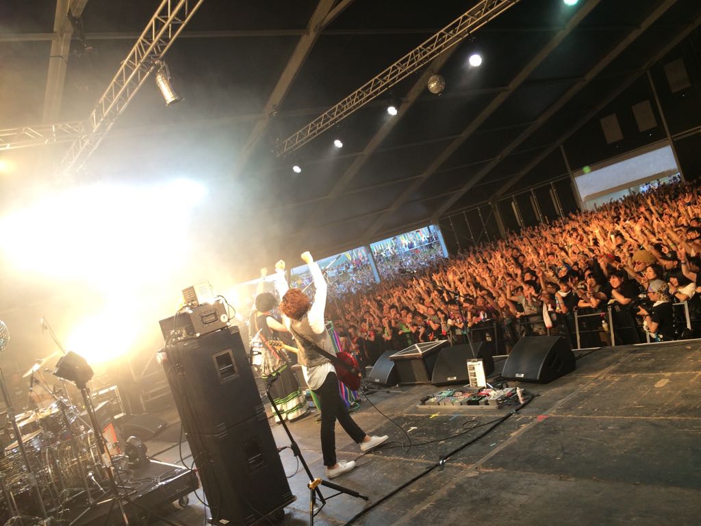 ライジングサンありがとう!結構ステージ遠かったみたいだけど、あれだけ多くの人が見てくれて嬉しかったー!外で踊ってる皆も見えてたよー!!夕方のホムンクルスは良い感じでした。