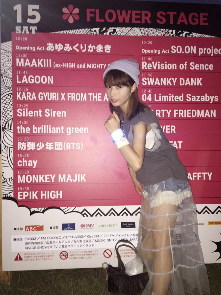 美肌効果、デカ目効果が出ていますね!とっても楽しそう!得意の変顔も披露☆ #サマソニ2015年8月16日 21:47