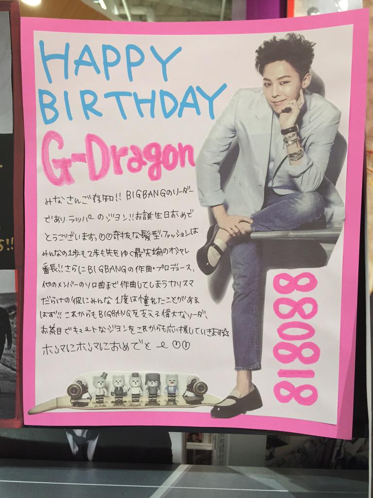 【 #BIGBANG】HAPPY BIRTHDAY!本日は8/18はリーダーGDさんのお誕生日!世界中からの祝福が寄せられるなか、当店からもVIP皆様とお祝い申し上げます!日本ツアー楽しみに待ってます!! #Happy28GDay