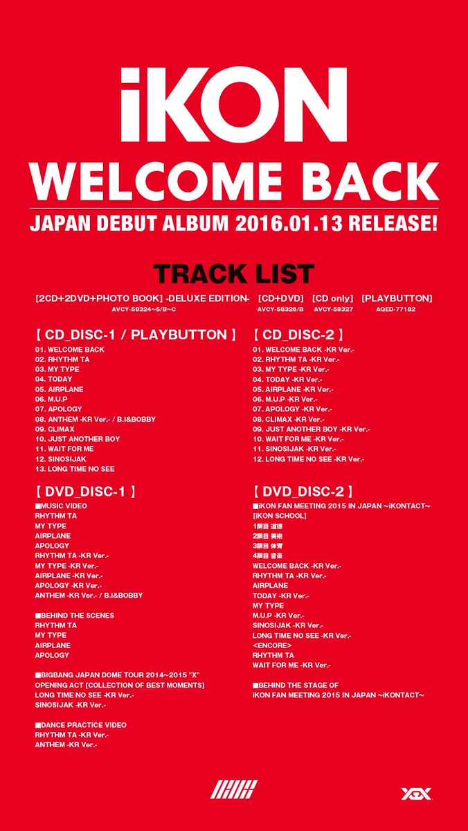 【 #iKON】1/13発売デビュー・アルバムのタイトルが『WELCOME BACK』に決定。豪華な収録内容と初回封入特典詳細も更新しました。HMV・Loppi限定特典アリ![ユフ]→ bit.ly/1L3alm7 pic.twitter.com/epHmr87Jf9
