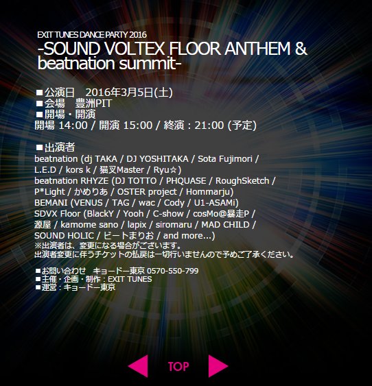 『EDP 2016 - SOUND VOLTEX FLOOR ANTHEM & beatnation summit』beatnation RHYZEから参戦します!3/5(土)豊洲PITで開催!RHYZE、元祖ビトネ、勿論自分も、そしてFLOORからも参加!空けといて! #BE生