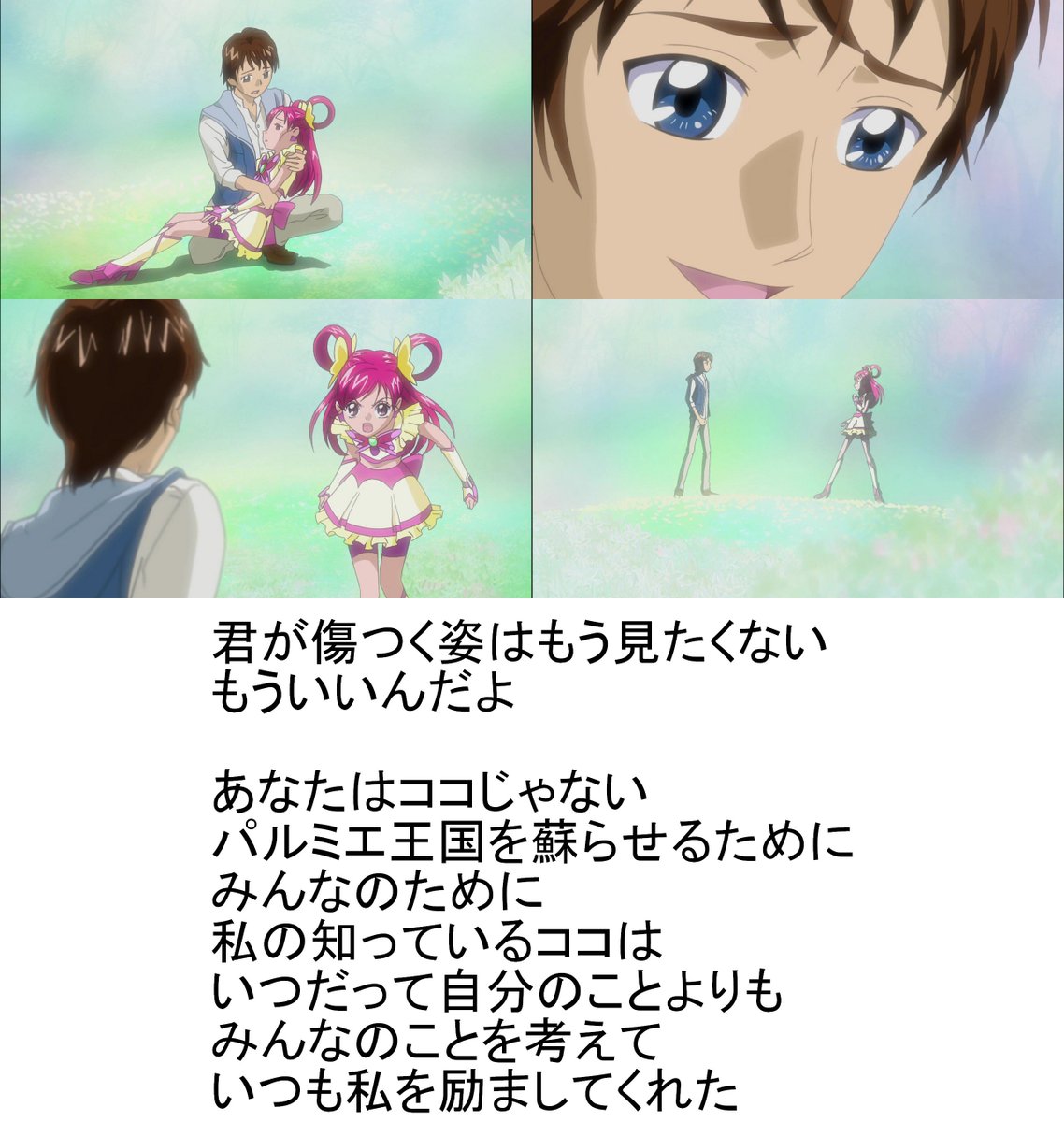 「プリンセス目指して~」という台詞から始まりつつ王子さまと結ばれるのは悪夢落ち相当というあたりプリンセスプリキュアが積んできたドラマがよく出てる、つか初期に言われた「王族と結婚すればいいじゃないw」という茶化しを「そういう次元の話じゃない」ときっちり潰しにきた #precure