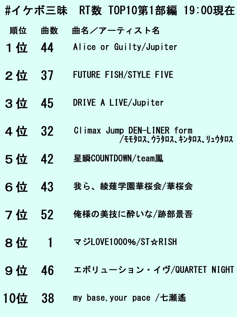 終了時点の #イケボ三昧 RT数TOP10