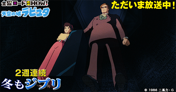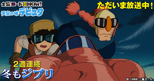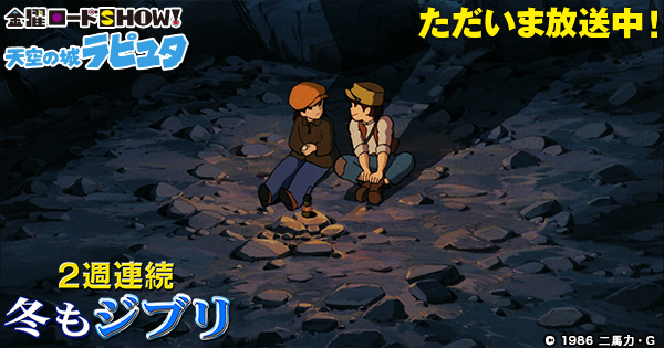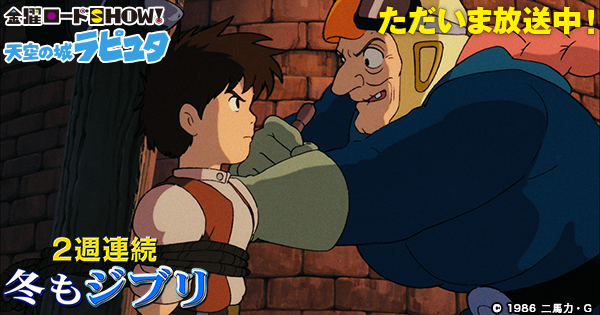 「天空の城ラピュタ」放送中! kinro.jointv.jp/ghibli2016/ #kinro #冬もジブリ pic.twitter.com/8vhyyVZI6n2016年1月15日 22:41