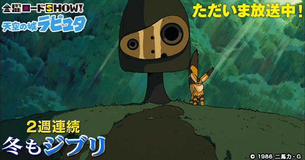 「天空の城ラピュタ」放送中! kinro.jointv.jp/ghibli2016/ #kinro #冬もジブリ pic.twitter.com/0WkUvKZVax2016年1月15日 22:16