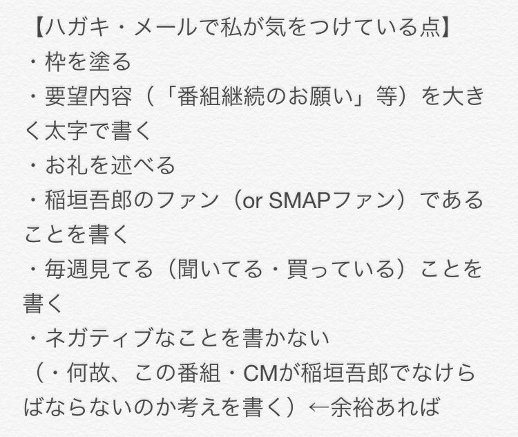 文才があって、字がきれいな方(代筆可)ちょっと素敵なハガキや便箋で企業宛てにお礼のお手紙などいかがでしょうか?内容が良いとほぼ確実に社長室に届きます |ω・) #SMAP #We_Love_SMAP_Forever