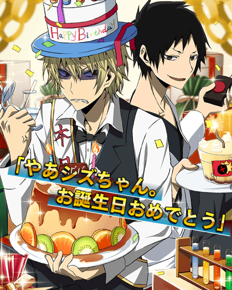 『デュラララ!! TUS』 gree.jp/r/78380/1では現在静雄の生誕祭を開催中! OP「Steppin'out」の画像を使用したメンバーも登場。生誕祭&次回イベントの特効付きです! #drrr_anime pic.twitter.com/tOq5U9g21O