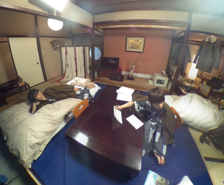 同室で泊まるんかな、かわいらしいな 右手後方にぶらさげられてるふたりぶんのコートもかわいい #火村英生の推理 pic.twitter.com/xkXnU1ZyJu