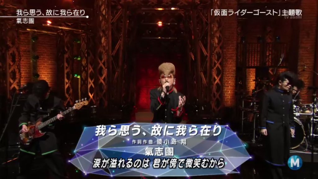 まもなく氣志團!仮面ライダーゴースト主題歌「我ら思う、故に我ら在り」を、仮面ライダーゴーストとスペクターとともに披露! #Mステ pic.twitter.com/x7QunuwX1J