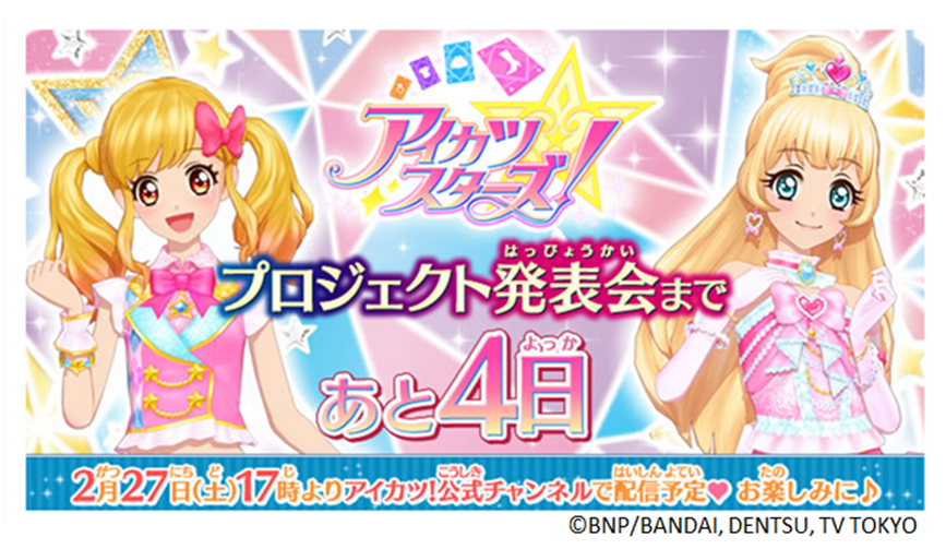 2月27日(土)17時から「アイカツスターズ!プロジェクト発表会」を配信するよ☆みんなぜひチェックしてね!