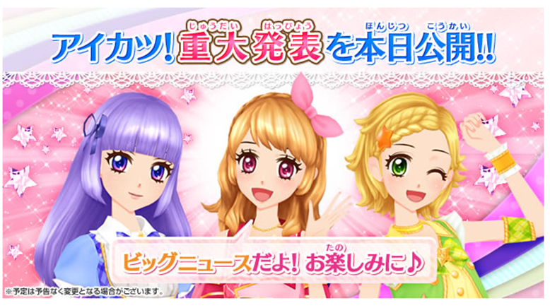 アイカツ!からの重大発表がいよいよ本日公開♪みなさん、お楽しみに!!