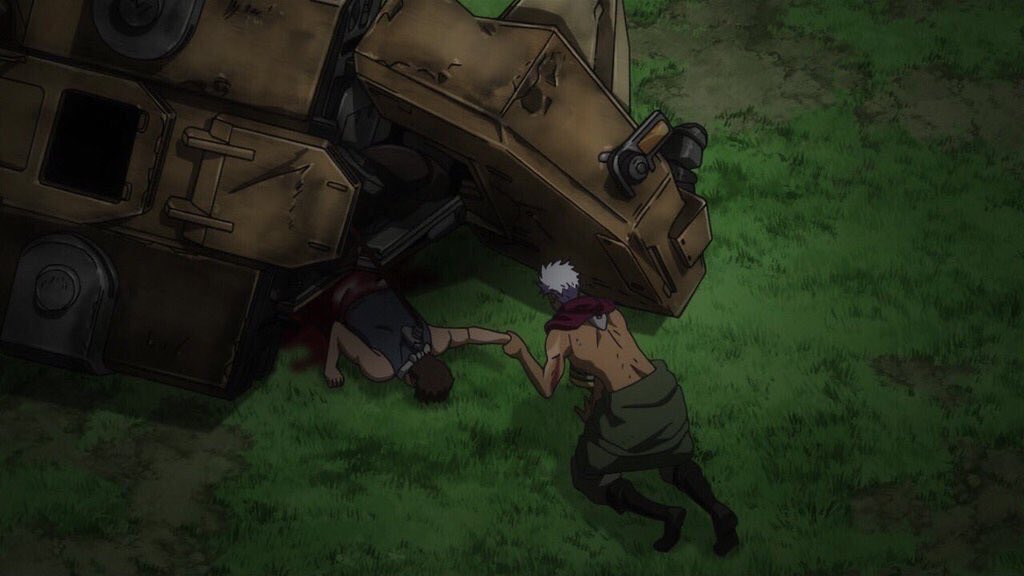 えここで ビスケット死亡って 1シーズンのEDの立ち絵が 以前 死亡者の遺影になってるとかいう噂をきいたけどまさか・・・ #g_tekketsu #鉄血のオルフェンズ pic.twitter.com/HPoSXPhFb6
