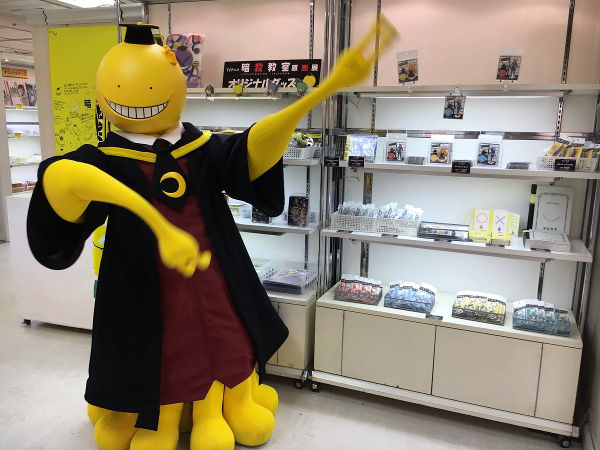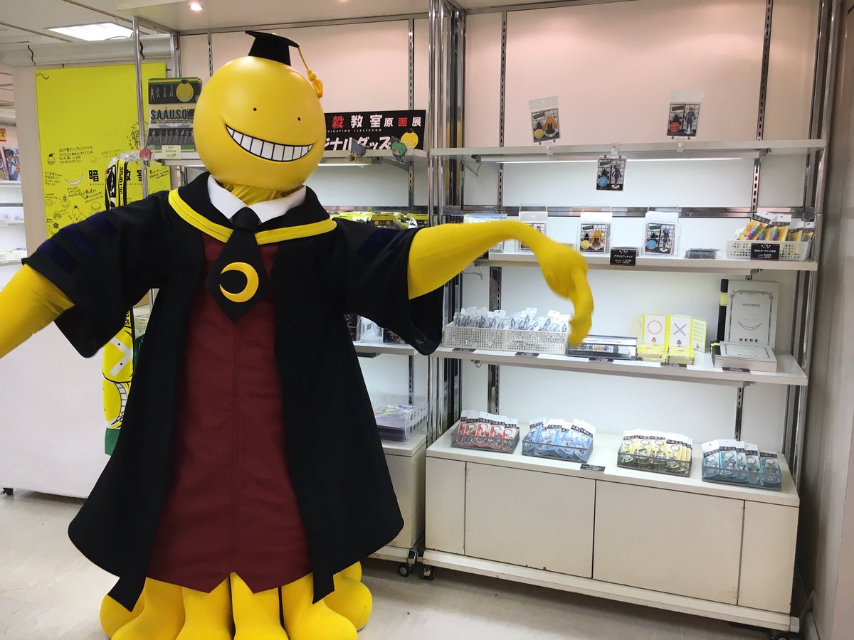 【原画展】この後13時から! そごう川口店 紀伊國屋書店「暗殺教室」原画展ブース前に殺せんせーが登場します♪ 記念写真も撮れますので、ぜひ参加してください! #暗殺教室 pic.twitter.com/6GPjJktqnT