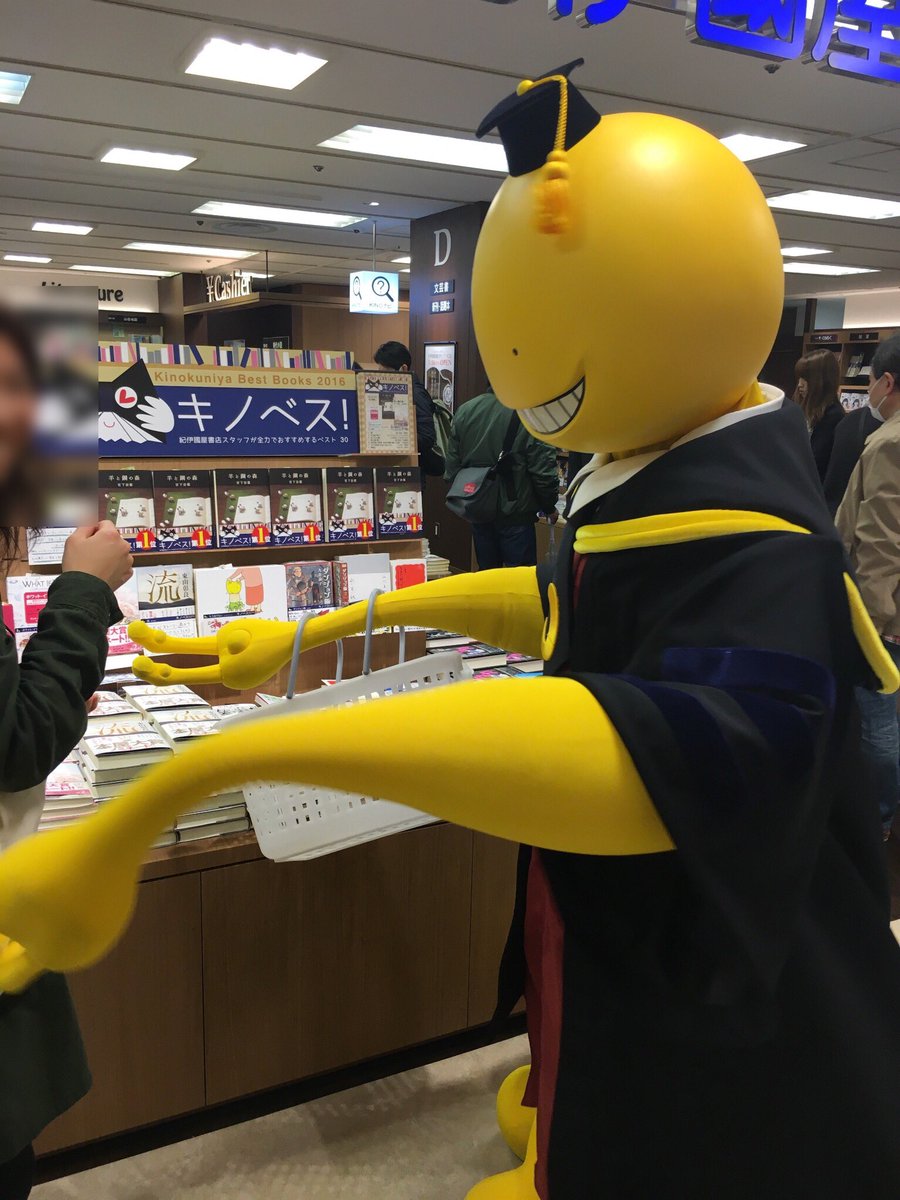 【原画展】まもなく17時より、そごう川口店 紀伊國屋書店でのグリーティングを再開します♪ そごう川口店での本日のグリーティングは、今回がラストとなりますので、ご参加の方はお早めに! 殺せんせーが店内を練り歩きます! #暗殺教室 pic.twitter.com/vqVUkYIH5m