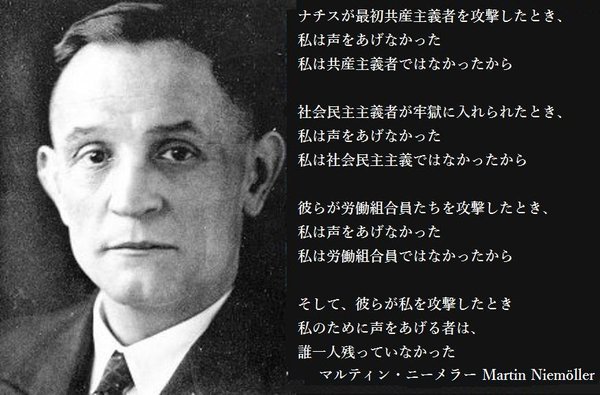 「ナチスが最初共産主義者を攻撃したとき、私は声をあげなかった