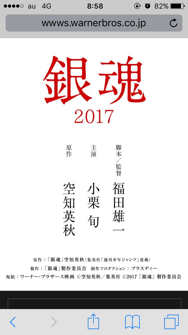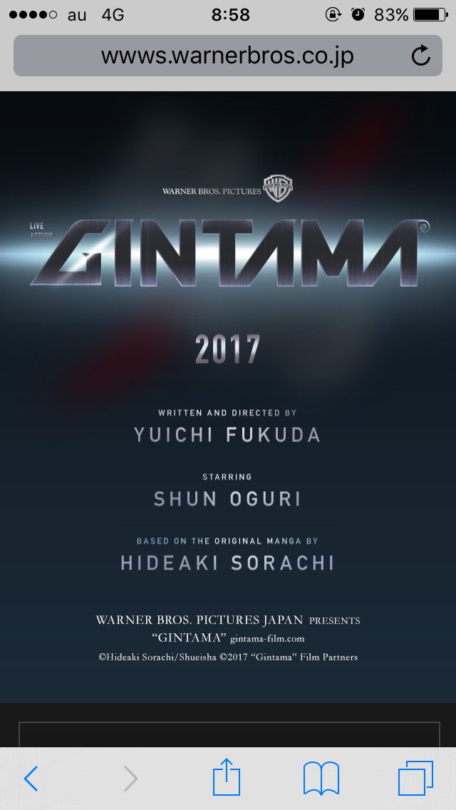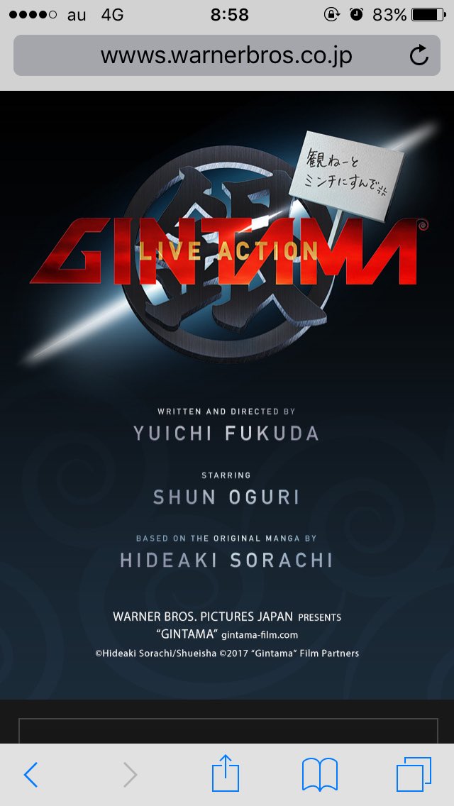 『銀魂』が実写映画化、17年公開予定 wwws.warnerbros.co.jp/gintama-film/ 脚本・監督は福田雄一さん、坂田銀時 役は小栗旬さん #映画銀魂