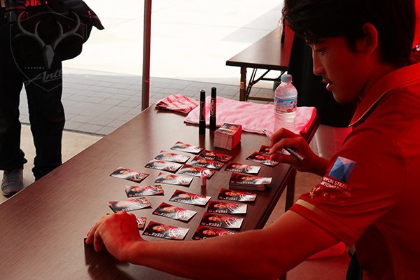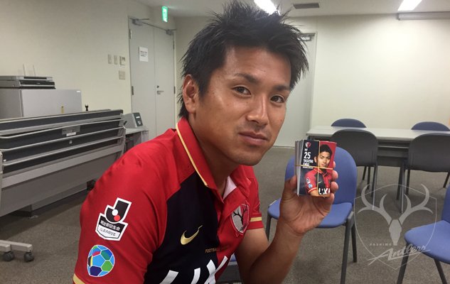 【7/18 SOCIO FESTA】名刺カードにサインを入れるヤナさん! #antlers #ソシオフェスタ
