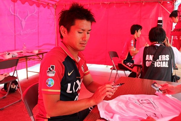 【7/18 SOCIO FESTA】1枚ずつ丁寧にサインをする大伍さん。 #antlers #ソシオフェスタ