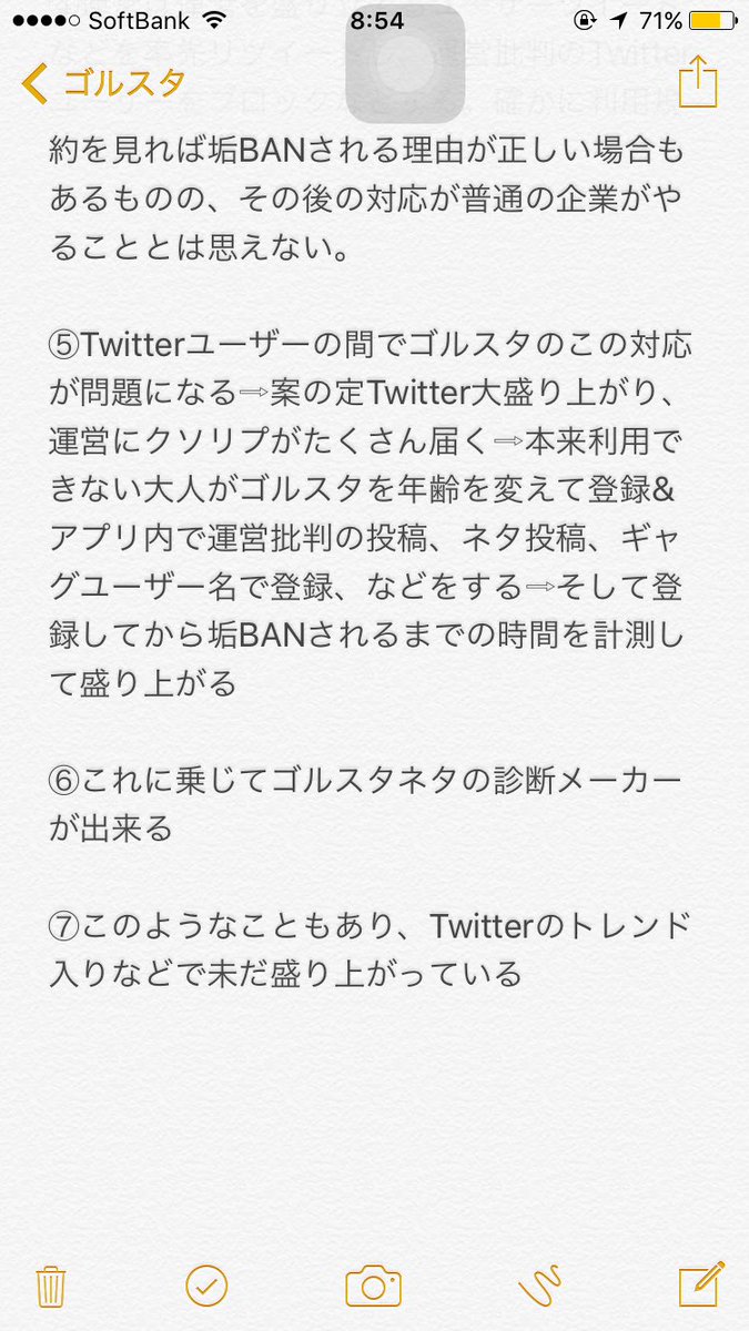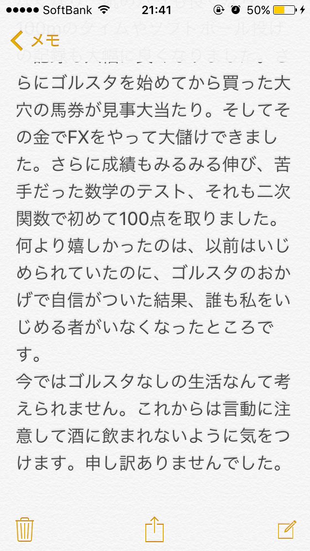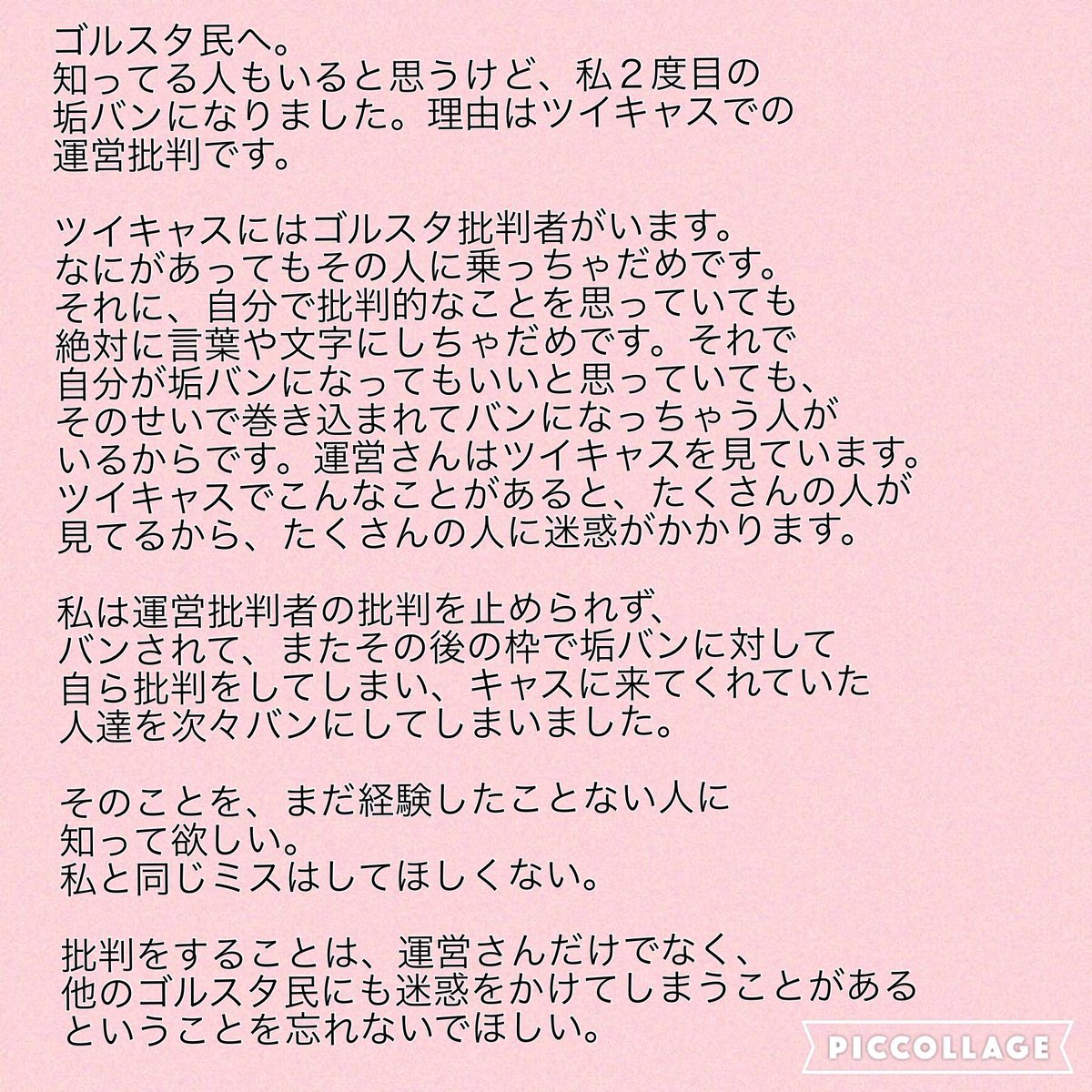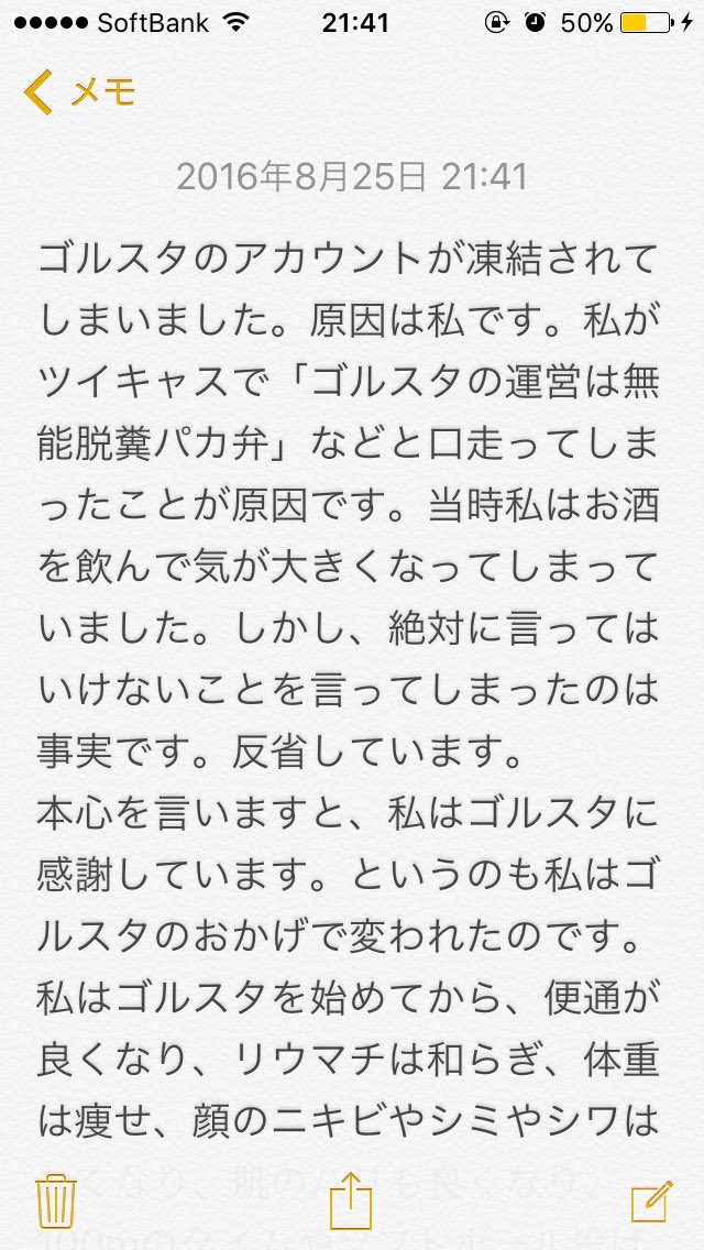 ゴルスタ垢が凍結されちゃったので反省文書きました...もう二度としません