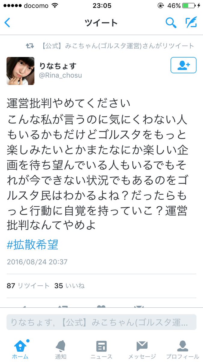 拡散お願いします🙏 #ゴルスタ pic.twitter.com/tIBPpRwIkO2016年8月26日 00:38