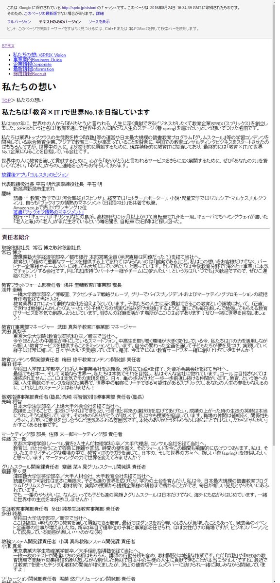 #ゴルスタ 運営の #Sprix さん、サイトのhtmlソースを大胆に書き換えて姿をくらますも、GoogleさんのIndexにはまだ存在しているもよう。というわけでWebキャッシュから「私たちの想い」を抽出してみたのがこちらです。 pic.twitter.com/gVGgvjaEQA
