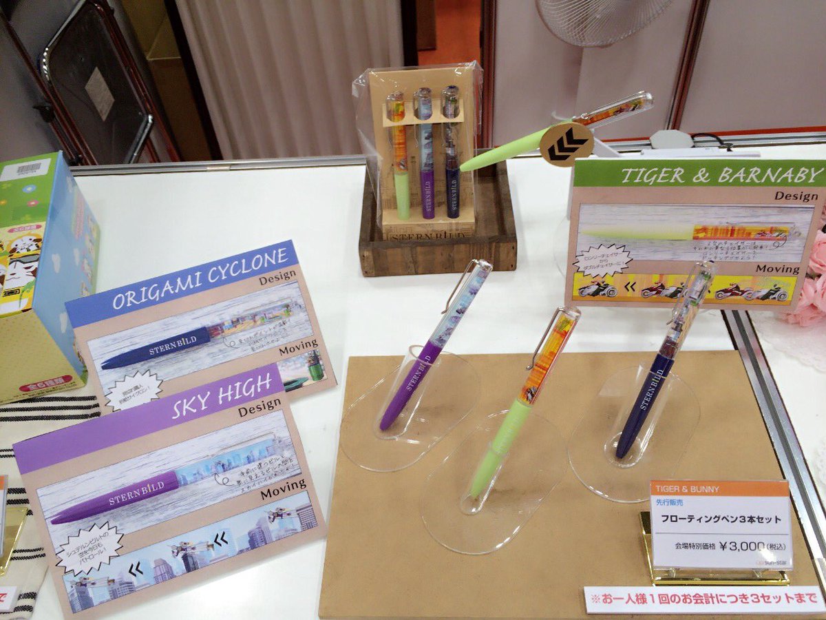 TIGER &BUNNYフローティングペン3本セットまだ在庫ございます、是非手に取ってフローティングしてみてくださいー!(˘ω˘ ≡ ˘ω˘)キュップリ第1弾もこそっとご用意してます!(3) #C3TOKYO #tigerbunny pic.twitter.com/nlqV3IgsmH