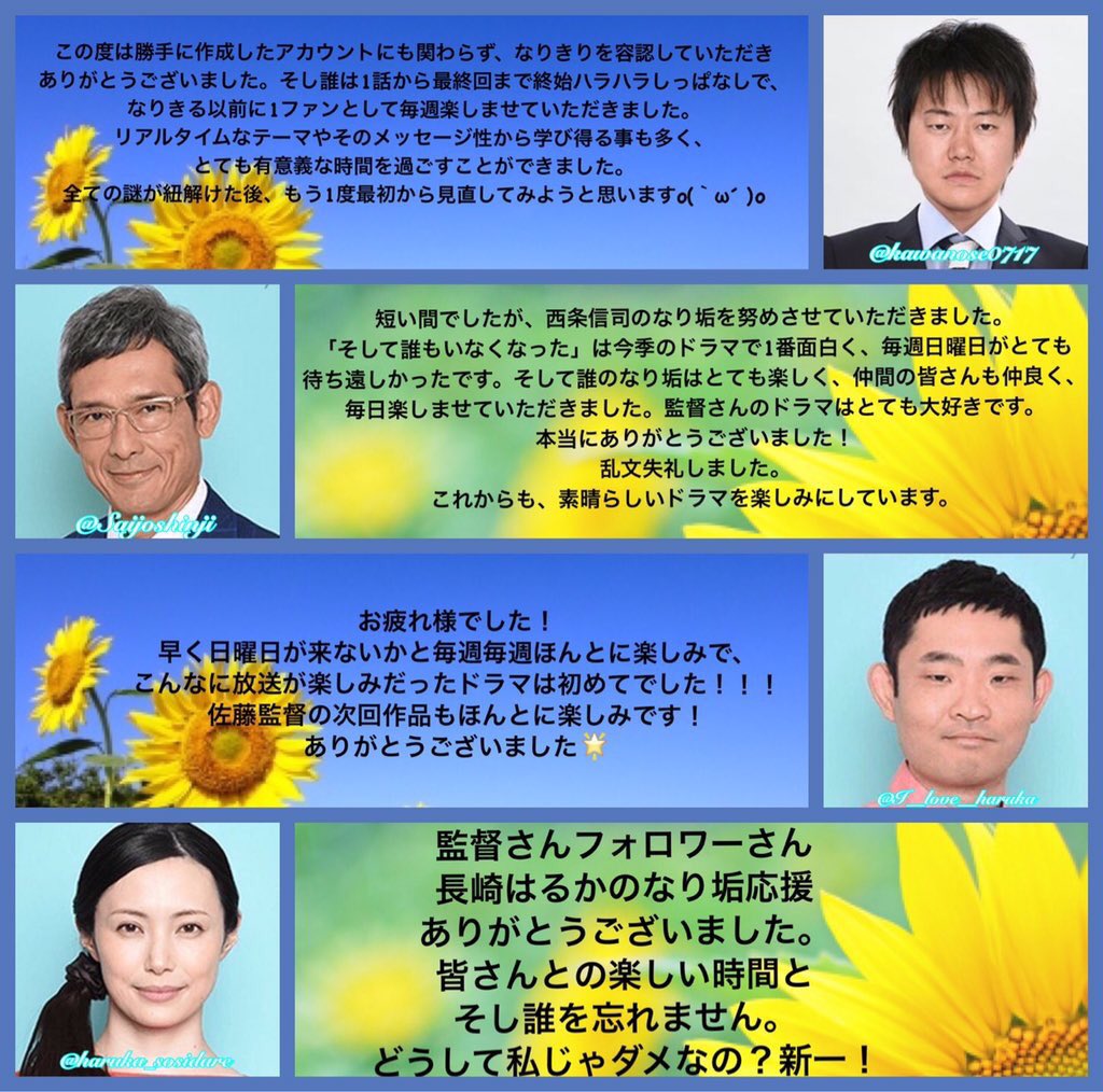 『そして、誰もいなくなった』最後までご視聴頂き本当にありがとうございました😭見てくださる皆様の声に毎週励まされてました🙋まだまだクランクアップ写真や最終回後にしか出せないエピソード載せますね☺️ #そし誰 #そして誰もいなくなった pic.twitter.com/5fOXDxpnaz