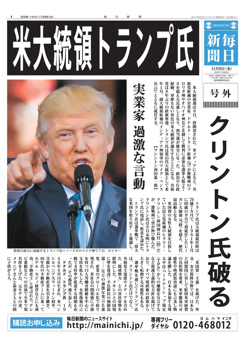 — 毎日新聞 (@mainichi) 2016年11月9日 16:44