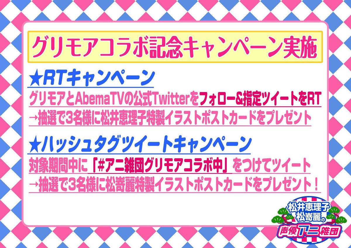 AbemaTVの大人気番組「松井恵理子・松嵜麗の声優アニ雑団」との期間限定コラボ開催!