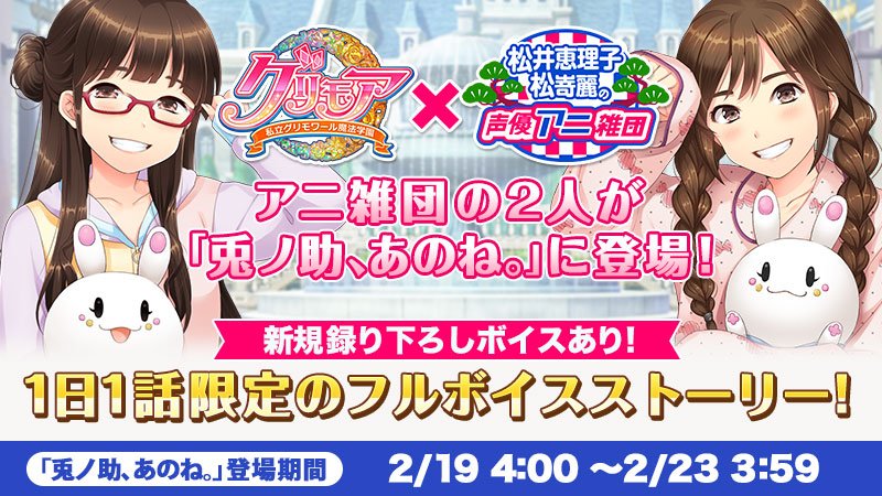 ボイス新規録り下ろし!グリモア人気機能"兎ノ助、あのね"に松井さん松嵜さんの2人が登場!