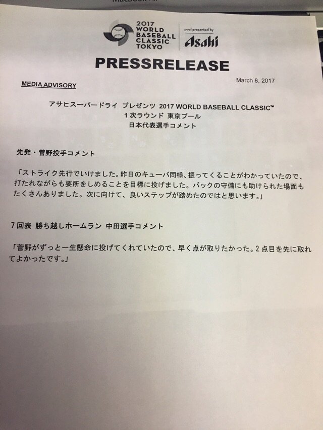 #WBC #侍ジャパン pic.twitter.com/ayA8oSbaMn2017年3月8日 22:52