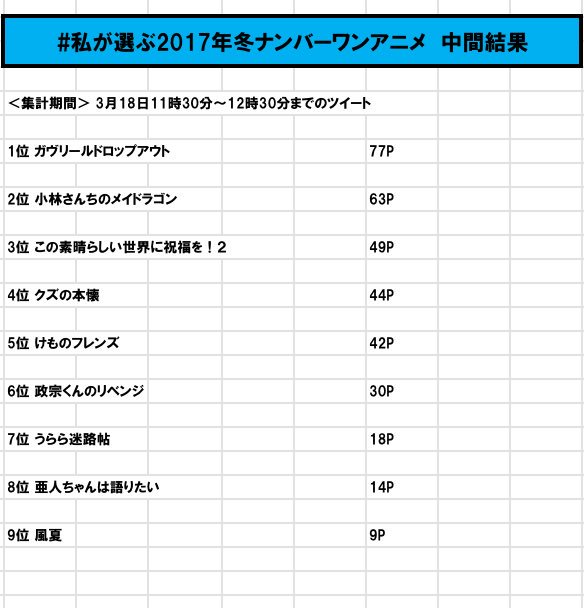 #私が選ぶ2017年冬ナンバーワンアニメ 【中間結果③】